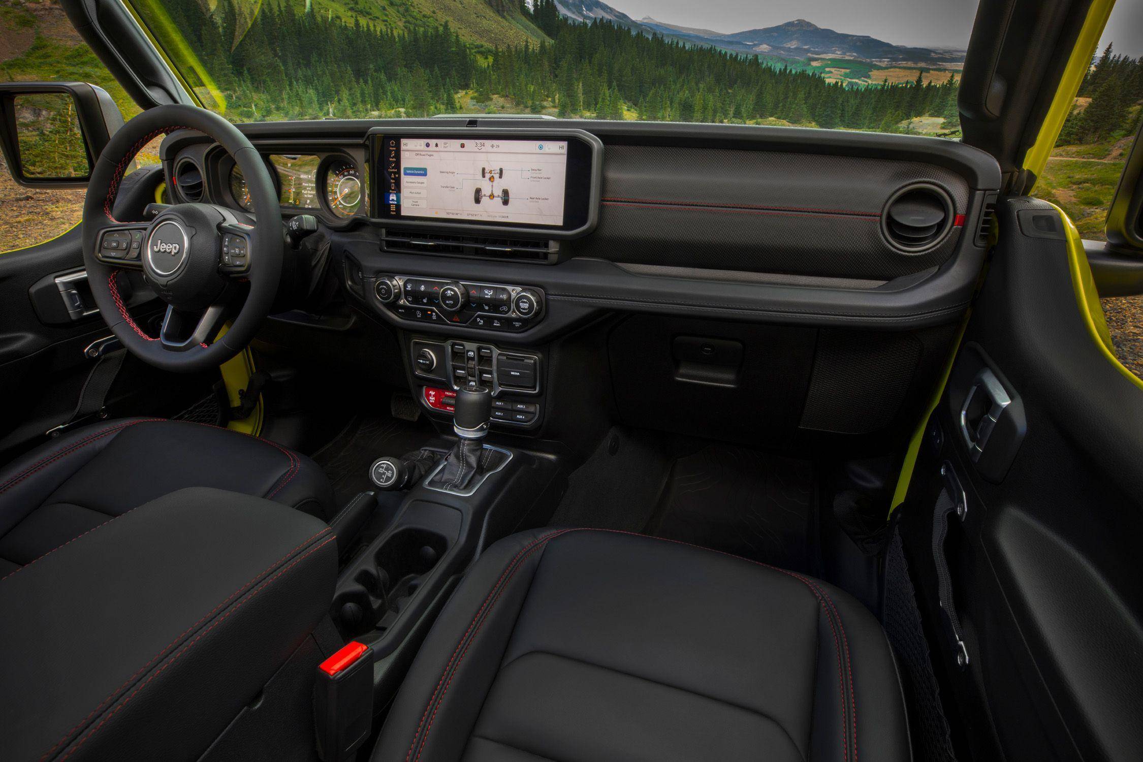 2024款角斗士的前脸弱化了皮卡的粗犷特征。由于太多老式天线被Jeep车主在越野时损坏,此次改款,厂商将天线集成到了前风挡上。车内新增了12.3英寸的触摸屏娱乐系统,该系统使用了最新的Uconnect 5软件。