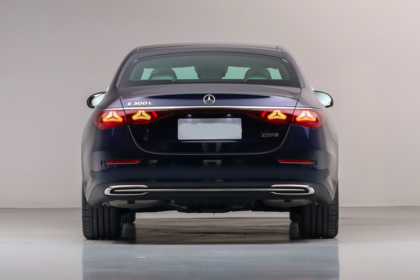 奔驰E级车尾的设计上最大的亮点就是尾灯点亮之后是一个奔驰星辉的样式,很有辨识度和仪式感。立标版车型和大标版车型在保险杠的设计上也有区别,前者采用了贯穿式的镀铬饰条,后者则采用单独的饰条进行装饰。