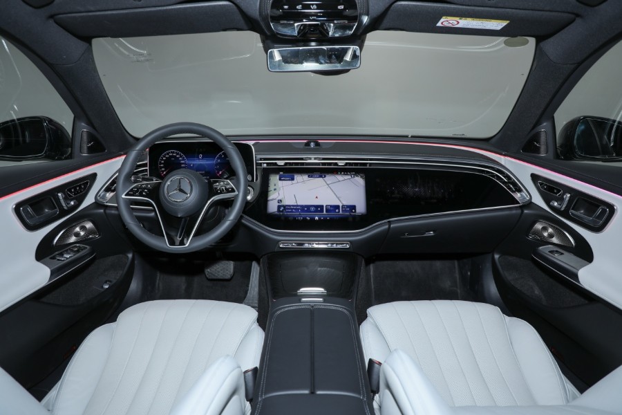奔驰E级车内的布局风格借鉴了奔驰EQS,换装全新的三屏设计,由12.3英寸全液晶仪表盘、14.4英寸中控屏和12.3英寸的副驾娱乐屏组成,并搭载高通骁龙8295芯片和第三代MBUX智能人机交互系统,支持语音识别控制、语音免唤醒、分区域识别、连续性语音识别等功能。在中控屏幕的下方,全新奔驰E级依旧提供了部分单独的触控按键。后方的盖板打开之后,里面设有两个杯架和手机无线充电区域。值得一提的是,该车的空调出风口采用了隐藏式设计,与整个中控台融合到了一起,整体感更强。
