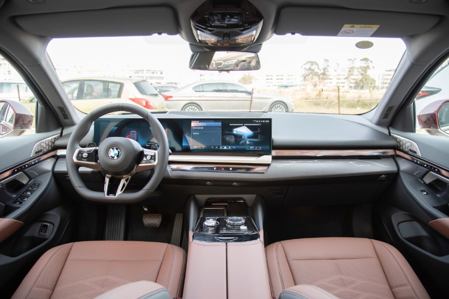 走进内饰,宝马5系车内的设计要简洁很多,首先那块12.3英寸液晶仪表+14.9英寸中控屏的大连屏大家比较熟悉了,在新7系等车型上都已经应用,双福式的平底式方向盘,前排的换挡杆和旋钮都变成了水晶透明质感的材质,前排座舱的时尚和科技感比现款好很多。不得不说,宝马5系在内饰的科技感方面还是有着不小的提升,可以说是兼顾了运动感与科技氛围。