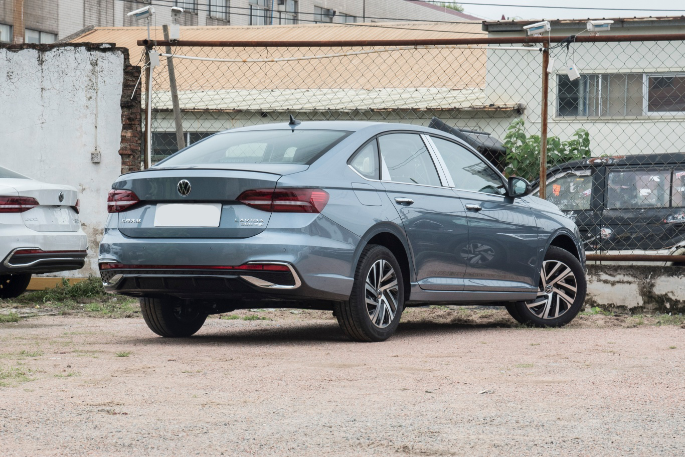 车尾部分,大众朗逸尾部继续使用了类似三角造型尾灯组,同时尾门上还点缀有一条小鸭尾造型装置。此外,后包围底部还采用了熏黑+镀铬装饰件,并且还配有大面积熏黑扩散器装置。