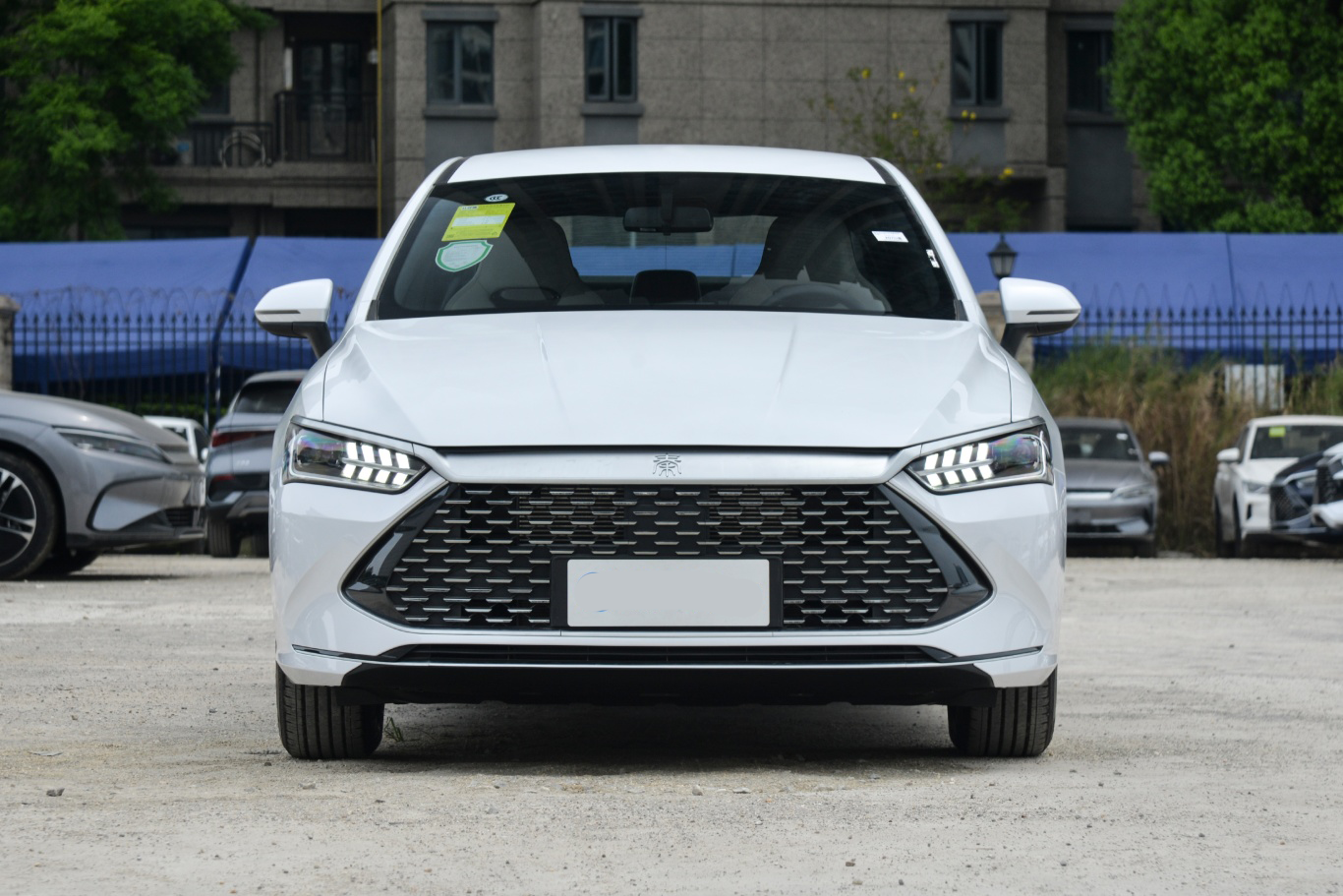 比亚迪秦PLUS的前脸部分采用了全新的家族式造型设计,采用了“Dragon Face”设计理念,DM-i版本前脸采用大尺寸六边形格栅,并配有银色饰条;EV版本前脸为封闭式设计,格栅上方配有贯穿镀铬饰条,饰条中间位置还配有“秦”的汉字标识。同时,新车还会增加白釉青涂装。