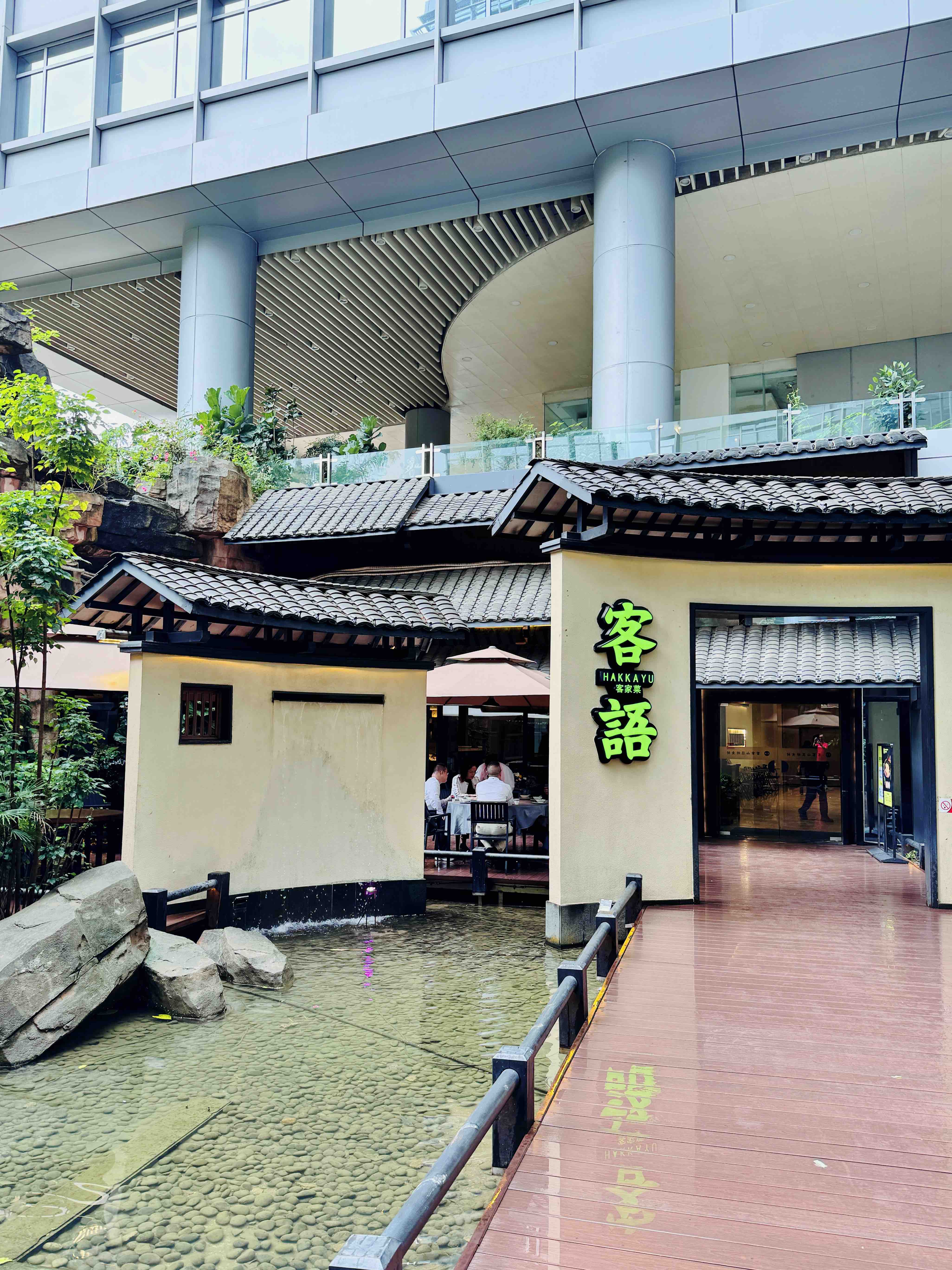 🧚这家客语位于地面层,入口处有岭南园林的风格,流水木道让人感觉非常放松🌳。餐厅内部的装修也很雅致,音乐舒缓,环境十分舒适