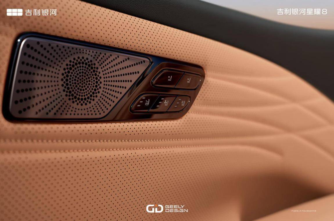 星耀8的座椅不仅软硬适中,还带有加热、通风和8点按摩功能,长途驾驶也不觉得累;特别是那VIP电动行政座椅,调节范围大,坐垫长度足够,腿部支撑特别到位;车内的音响系统也很赞,23扬声器带来的音效特别震撼,有种身临其境的感觉;而且,车内软包面积高达85%,很多地方都用了麂皮材质,触感细腻,看起来也高级。