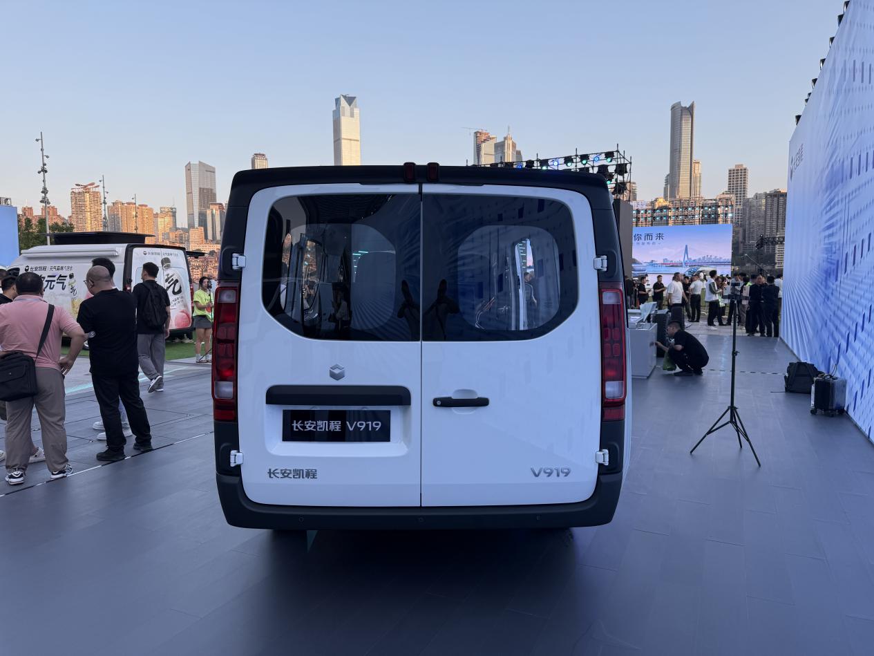 车辆尾部,充满品牌意识的LOGO恰到好处的点缀了车身,精致十足,造型犀利的尾灯与前大灯相呼应,体现了车辆的设计感,也向外传达了长安凯程V919作为新时代商用车的身份。