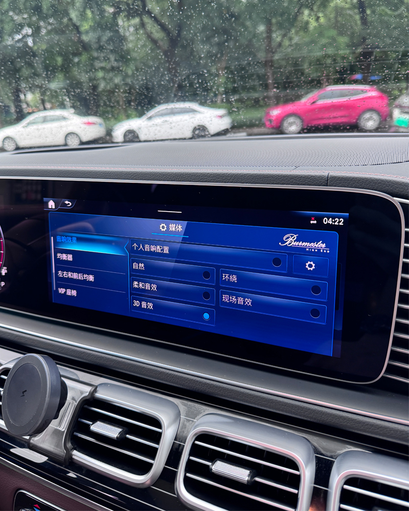 25款奔驰gls450升级3D大柏林音响,汽车音响界的爱马仕,随着奔驰gls450中期小改款,它的车机系统也跟着更新了,大柏林音响,虽然没有改变,还是原有的26个扬声器,2个功放,但是播放出来的音质,也是稳稳当当的,高音准,中音甜,低音沉,总的来说通透。
