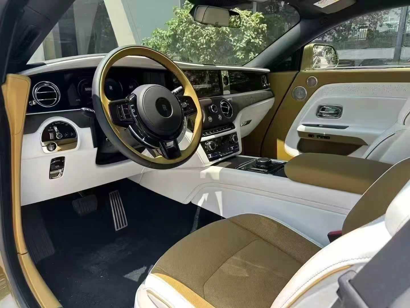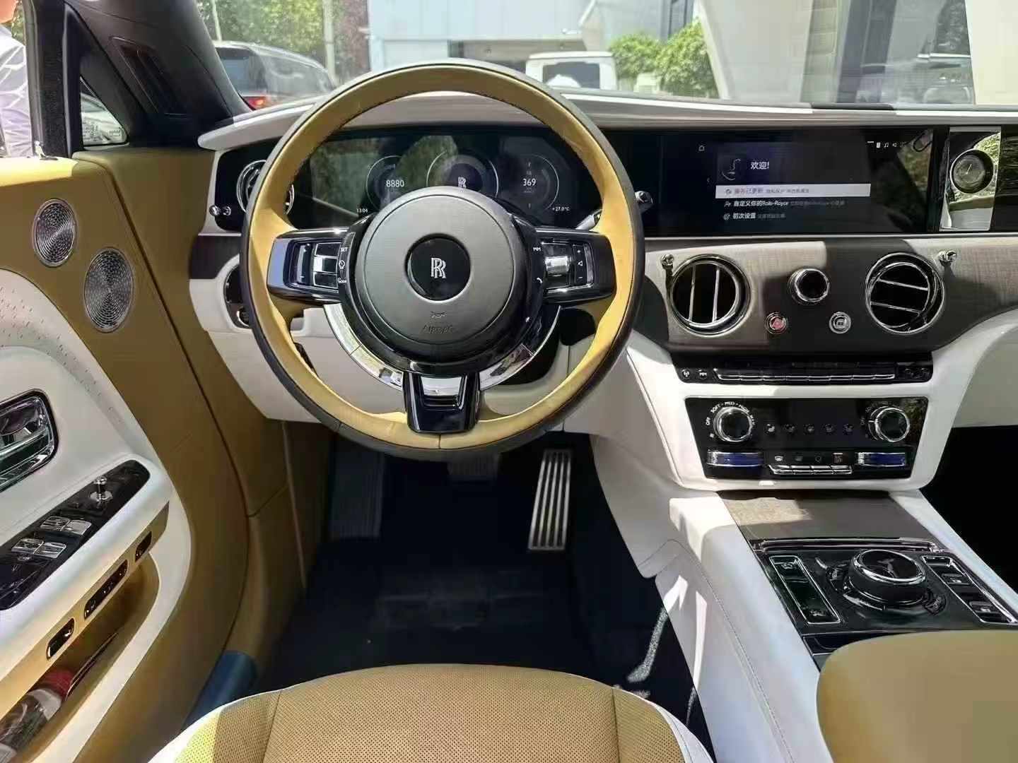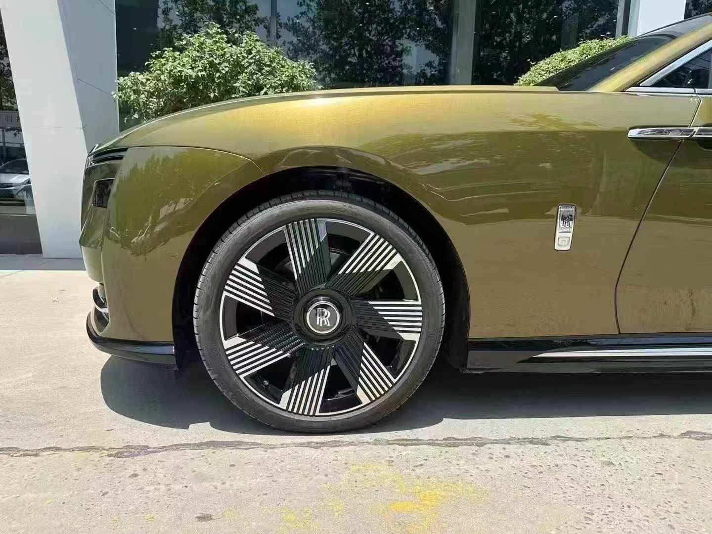 光拂过曲面,漆色如名酒般流转——这是劳斯莱斯为闪灵(参数|询价)专属调制的双色乐章,钻石黑车顶如夜幕垂落,与黄绿交融成一道流动的幻影。游艇式溜背线划过空气,3210mm轴距托起5453mm的车身,近三吨的体量却以0.25Cd风阻系数切开气流,成为劳斯莱斯家族最优雅的风之剪影。