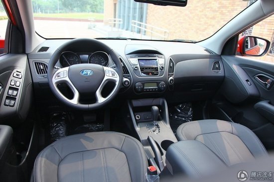 内饰方面,ix35的设计样式整体上比较偏重于后现代主义风格,整车两个色调的融合效果很不错,给人的视觉冲击力很强,而且在拥有不错的外观设计的同时,实用性也得到了不错的保障,各功能键区的布置比较清晰易懂,操作起来也比较容易上手,另外值得一提的是,方向盘上的音量和定速巡航功能是通过拨杆来实现的,这有别去大部分按钮设计,而且在实际操作中也很方便。