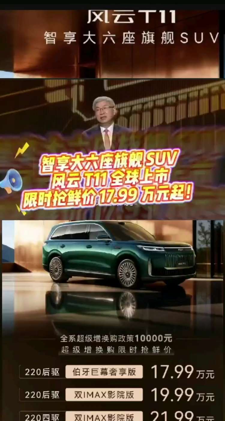 智享大六座旗舰 SUV 风云 T11 全球上市,限时抢鲜价 17.99 万元起