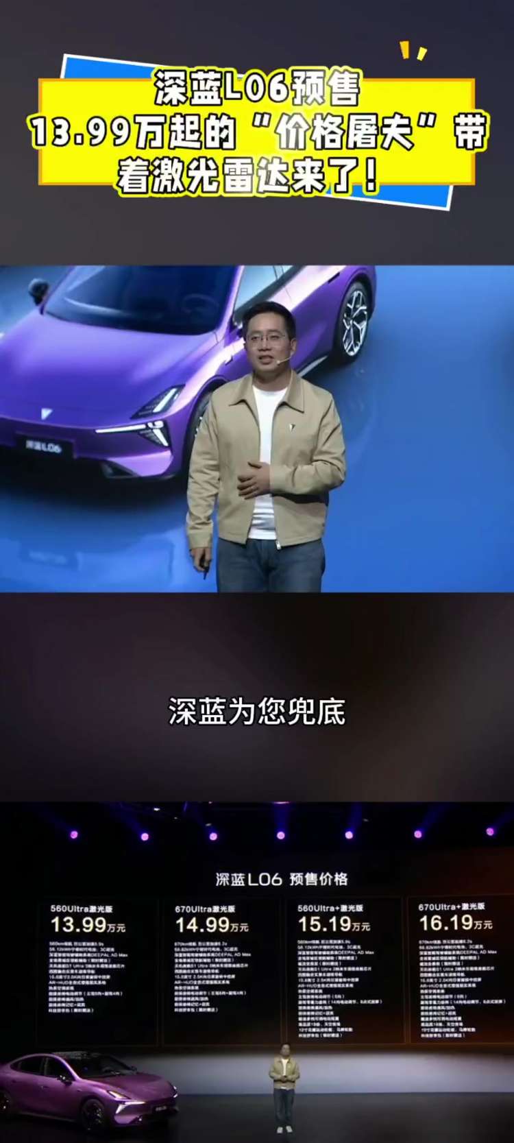 深蓝L06预售,13.99万起的“价格屠夫”带着激光雷达来了