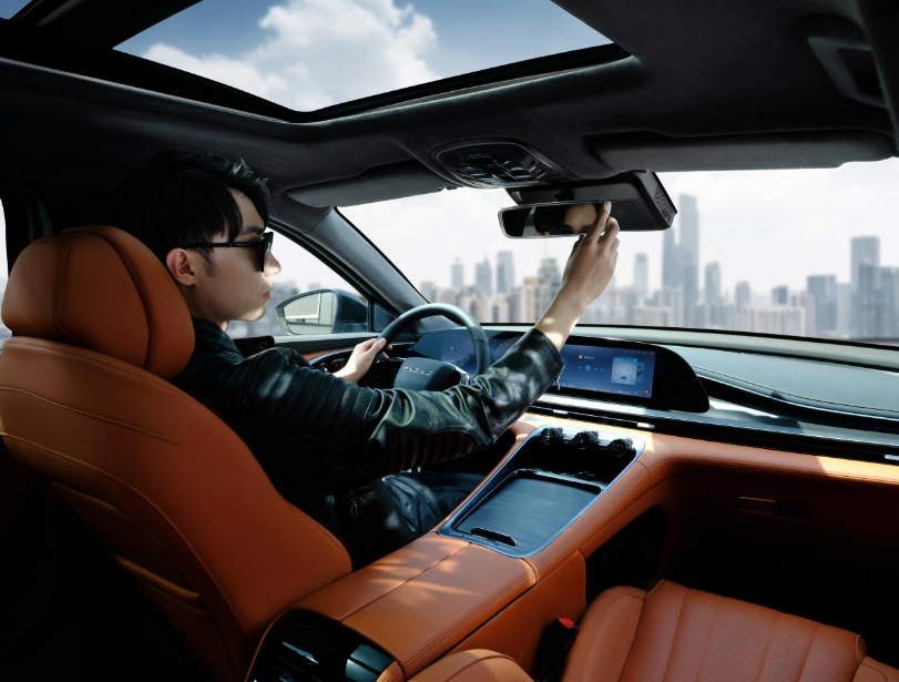 坐进车内,豪华与科技感扑面而来。延续沐光橙真皮内饰,搭配NAPPA真皮座椅和麂皮顶棚,触感和视觉效果都很棒。双12.3英寸曲面联屏搭载Lion5.0雄狮智云系统,内置高通骁龙8155芯片,导航、多媒体切换、多任务处理都毫无卡顿。