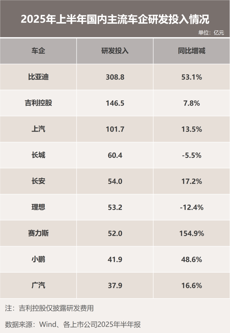 比亚迪又来交成绩单了,这次简直强到离谱!2025年上半年,营收直接飙到3713亿,净利润155亿,创了历史新高,今年前七个月全球销量249万辆,同比涨了27%,海外销量高达55万辆更是像坐了火箭一样暴涨130%!但更让我惊叹的是比亚迪对研发的执着和投入。今年上半年,研发投入直接飙到309亿,比净利润还高一倍,同比涨了53%。这可不是小数目,从2011年到现在,14年里有13年研发投入都超过了净利润,累计砸了超2100亿!这得是多大的决心和魄力啊!