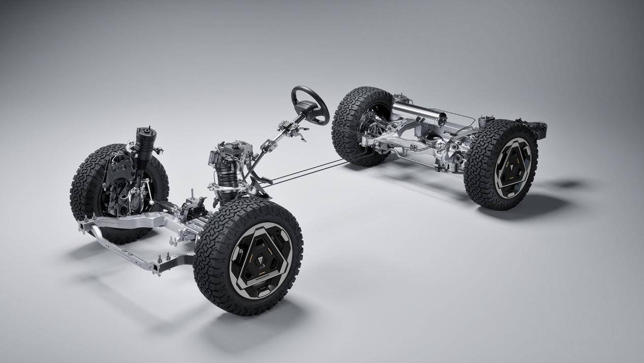 越野车最看重的就是硬件的三大件,底盘悬挂是很关键的。虽然不少硬派越野车保留了独立车架,也就是大梁,越野能力和承载能力没的说,但是重量大操控性差,内部实际空间小,这对于家用车来说可不是个好消息。深蓝G318和方程豹钛7的路线明显不一样,它们使用承载式车身和独立悬挂,听起来似乎不够野,但世界越野车的发展趋势还真就是这样。目前在售的路虎卫士(参数|询价)和自家的大哥揽胜(参数|询价)以及发现都采用了承载式车身结构,曾经日系越野三杰之一的帕杰罗(参数|询价)就是如此,在第3代车型的时候也取消了大梁,好评如潮。取消大梁的优点太多了,重量轻空间大操控性好,通过加强车身结构并不会显著降低越野能力,城市(参数|询价)使用的便利性直线提升,当下这类车不就主打个能城市能越野么?当然,深蓝G318和钛7近一步使用了前双叉臂和后多连杆悬挂,公认的高级别悬挂。