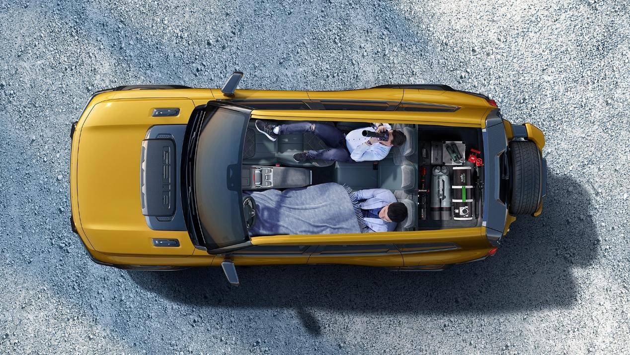 那么这要是还不够呢?那么很简单,放倒座椅!深蓝G318的座椅折叠之后纵深够大,容积直接增加近一立方米,达到1700多升。因此在准备充足的情况下,深蓝G318这个超过5米的车身长度就有了更大的意义,真能当床用。而立起全部的座椅,深蓝G318依旧是最能拉的一个,拉人拉物都兼顾。钛7的表现要更好一些,后备箱空间稍大一些,也是一步变成大床房。不仅如此,钛7也有自己的绝活,那就是无人机舱,能拍摄大量精彩内容,也能当作领航员和侦查员,如果说诗与远方的话,那么钛7和深蓝G318在诗这里都做到位了。