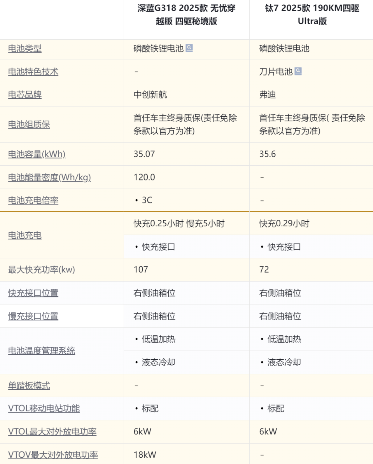 倒也不是说钛7真不行,其实重点还是产品规划的问题。深蓝汽车旗下扛把子的就是G318,给的目标就是越野比肩传统越野车,舒适性和实用性还不能低于家用SUV,两手一起抓还都抓得挺紧。而方程豹旗下的方盒子有两个序列,要越野那是豹5(参数|询价)豹8(参数|询价)干的事,而要轻越野要方盒子要这个情绪价值,那直接上钛7,分工明确。所以G318和钛7在越野上面的差异就很容易理解了。