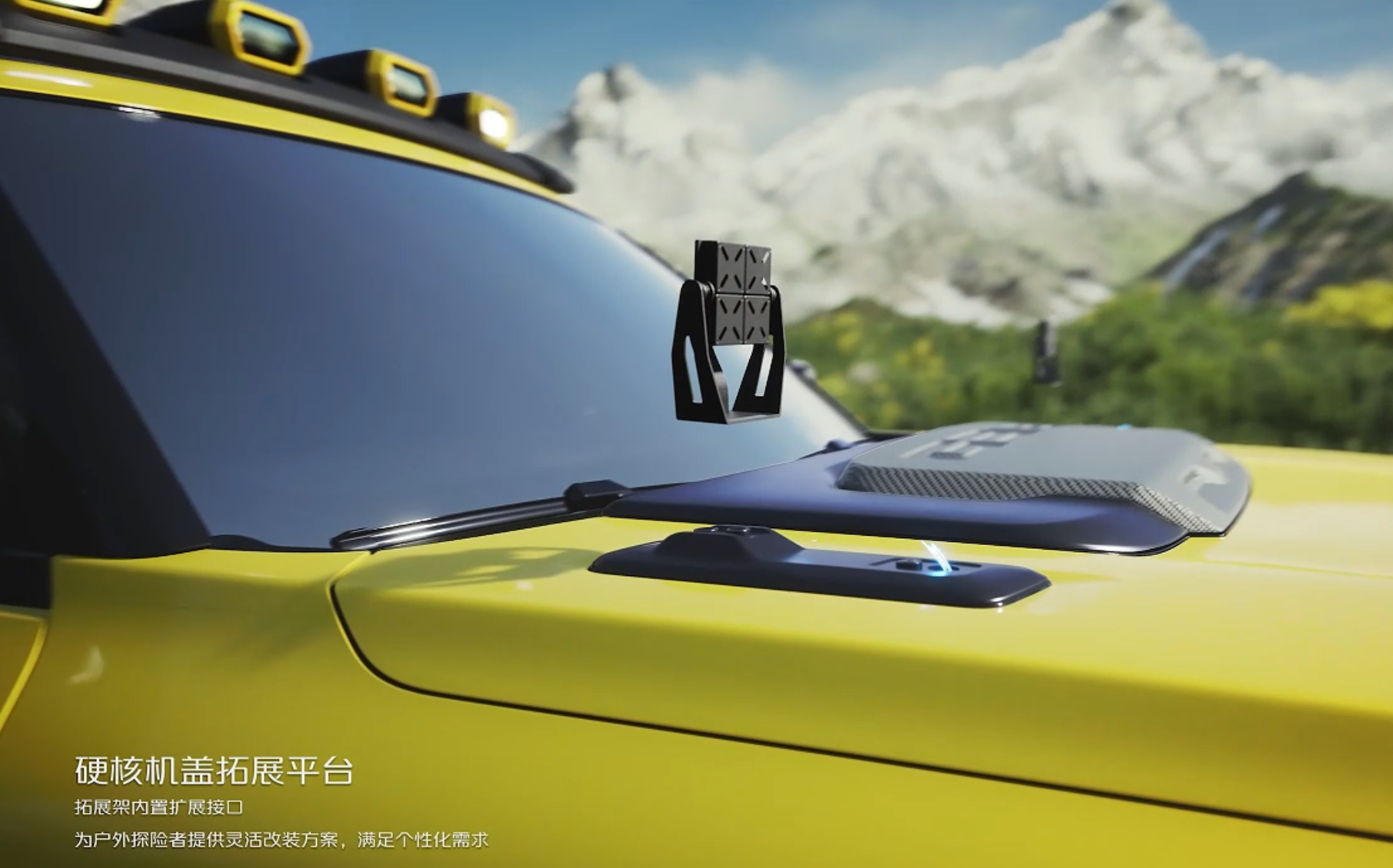 工业设计还只是深蓝G318四驱秘境版的一部分,它还有很多巧思的实用设计,它的前机盖也有很多安装点,运动相机,Pocket3云台相机,射灯,装饰件等等都可以安装,相当的硬核。