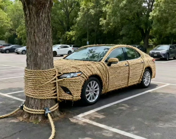 将车绑在树旁边?AI图火出圈