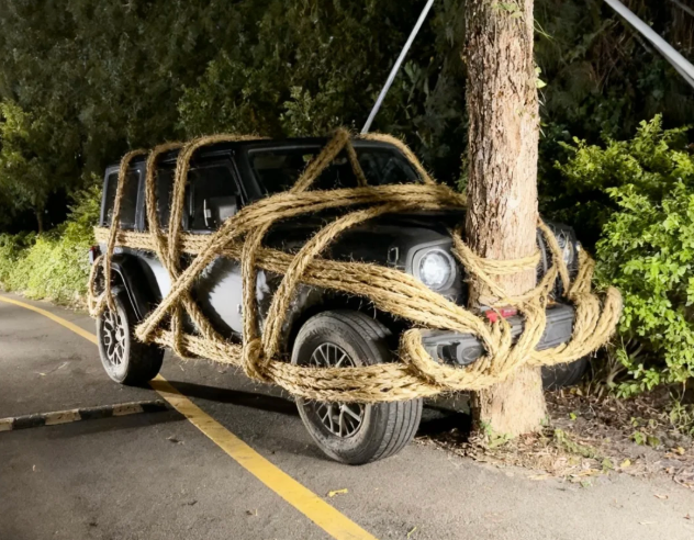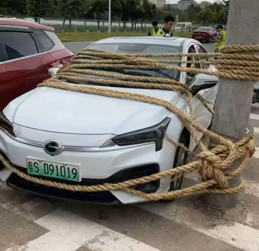 一堆用麻绳绑车的照片也是火出圈了。