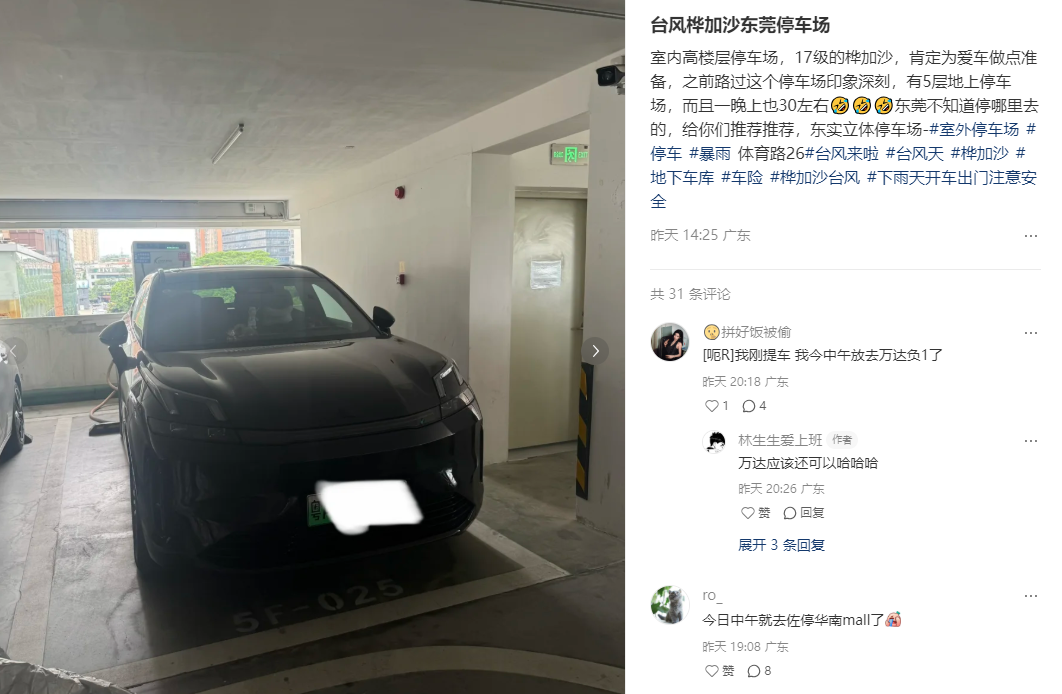 风王“桦加沙”已经霸占好几天热搜了,中心附近最大风力达到16级,广东地区严阵以待。按照往年经验,台风过境,停在地面的汽车会受到不小的威胁,为此,车主们也是尽力提前防范。