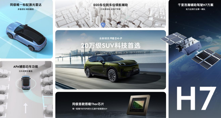 全新领克08 EM-P是同级唯一全系标配激光雷达的插混SUV;也是全球首款搭载Thor芯片的中型SUV车型,采用目前行业最先进的4nm制程,算力高达700TOPS,为复杂路况下的精准感知与决策提供强大支撑。依托中国车企算力第一、全球第三的吉利星睿智算中心2.0云计算平台,为辅助驾驶训练、智能座舱迭代和大模型推理提供了更加全面的支持。