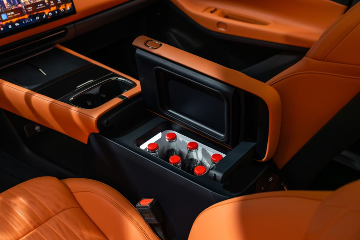 为全家增添极致的舒适体验,全新领克08 EM-P在中控扶手处提供了7L双开门冷暖控温冰箱,制冷速度同级最快,10分钟左右,从24℃降温至-6℃,保温范围35℃-50℃,并支持多种快捷预设场景模式,可通过车机和手机APP控温。无论是成人的冰饮料,还是为宝宝温奶,全家人的温度需求都能被精准满足。二排还配备了可承重15kg的小桌板,满足用户移动办公、儿童用餐,桌游等多种出行场景需求,大幅提升后排舒适度及娱乐体验。