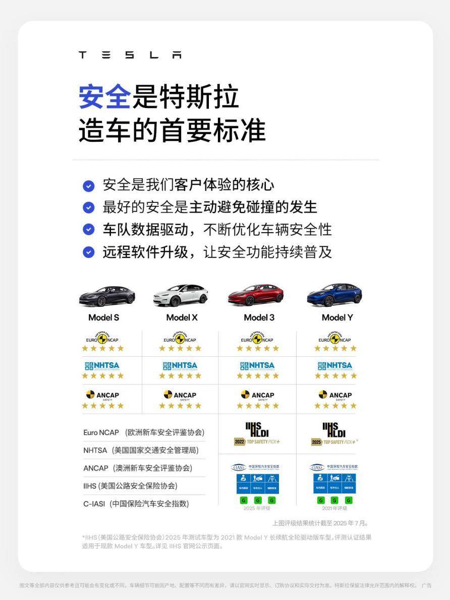 第三季度Model 3/Y在美国、中国、欧洲、澳洲等多个国家和地区的权威机构安全测试中获最高安全成绩。S3XY全系车型已在美国NHTSA、欧洲NCAP、中国C-NCAP、澳大利亚ANCAP等多个权威机构中获得“五星安全”评级。同时,特斯拉还将前排安全气囊系统做了进一步优化。前排安全气囊可通过 Tesla Vision 视觉处理系统优化前排气囊系统点爆时机,大幅减少追尾前车等前向碰撞事故中乘员受到的伤害。