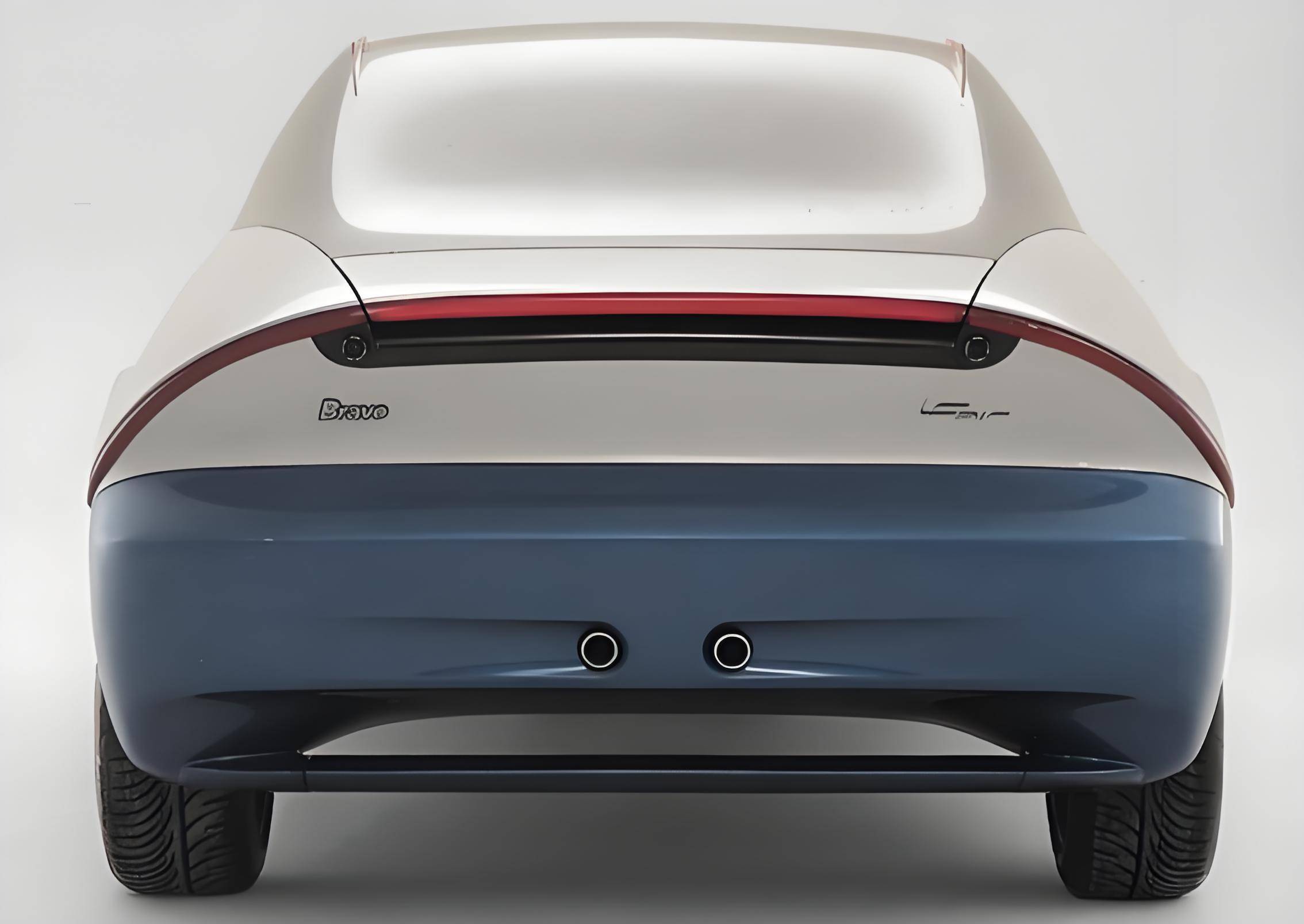 Flair概念车基于菲亚特Bravo打造,整车重量仅为1100千克,车身尺寸为长4200毫米、宽1750毫米、高1230毫米。这款车的设计延续了Fioravanti在1994年Sensiva概念车上对涡轮辅助力的研究,在空气动力学优化方面进行了更深入的探索,特别针对车辆底部和尾部进行了细致分析。