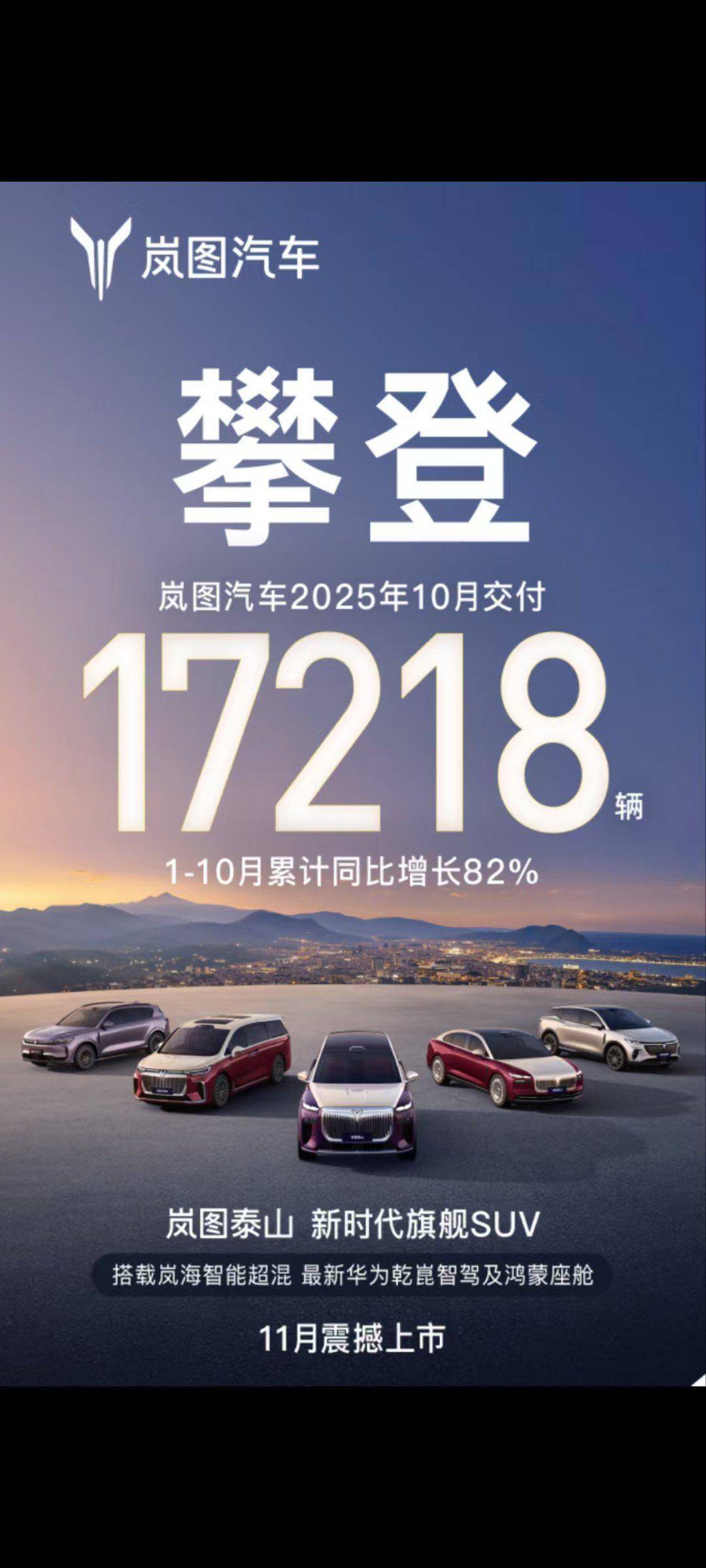 搭载满血版华为全套智能化解决方案,还有央企品质背书,综合车价和金融政策来看,岚图FREE+瞄准20万级中大型家用SUV细分市场,是要把性价比拉满了!2025年10月,岚图汽车交付量达17218辆,创品牌历史新高,实现连续九个月销量增长。