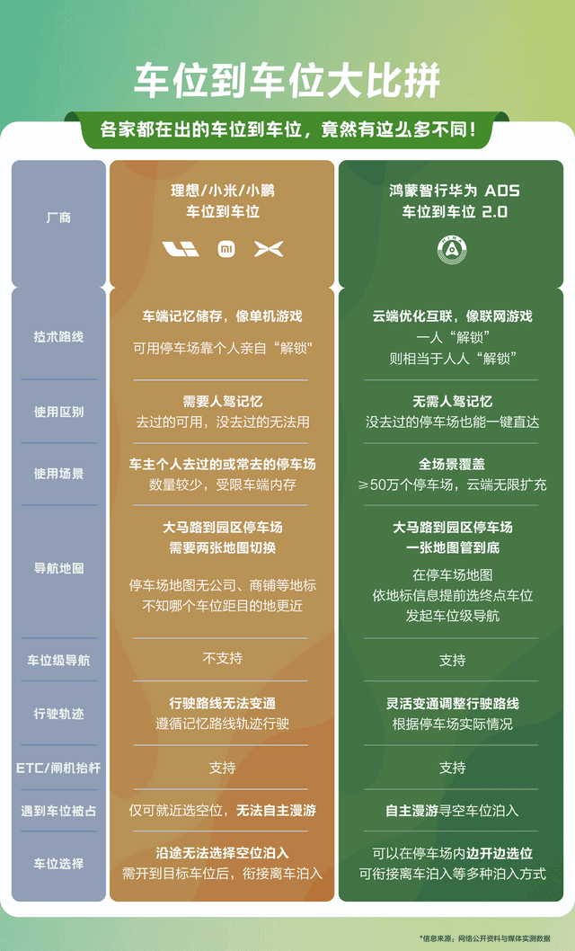 除了在路上跑得更聪明、更安全,华为乾崑智驾ADS 4还着力解决了困扰无数司机的难题——停车。该系统的车位到车位2.0的全场景贯通能力,支持园区内精准车位导航,支持全国超50万停车场,解决了用户“最后一公里”的泊车焦虑,是辅助驾驶从“高速场景”向“城市场景”渗透的重要里程碑。