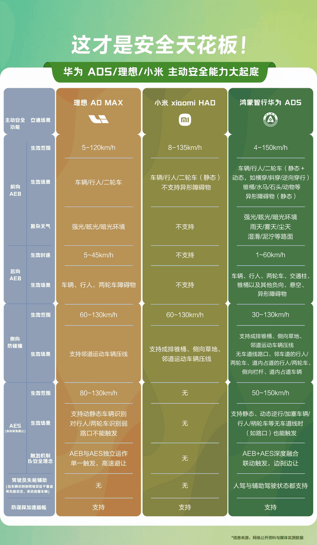 安全,永远是驾驶的第一要素。华为乾崑智驾ADS 4的防碰撞系统也进行了全面强化,几乎覆盖了我们日常驾驶中可能遇到的所有风险。该系统能够有效识别斜穿行人、预判两轮车行为,主动安全生效范围可达1-150公里/小时,并新增了爆胎稳定控制与驾驶员失能辅助等创新安全功能。可以说全维安全能力,让华为乾崑智驾ADS 4处于行业断代领先的位置,而非第一阵营。