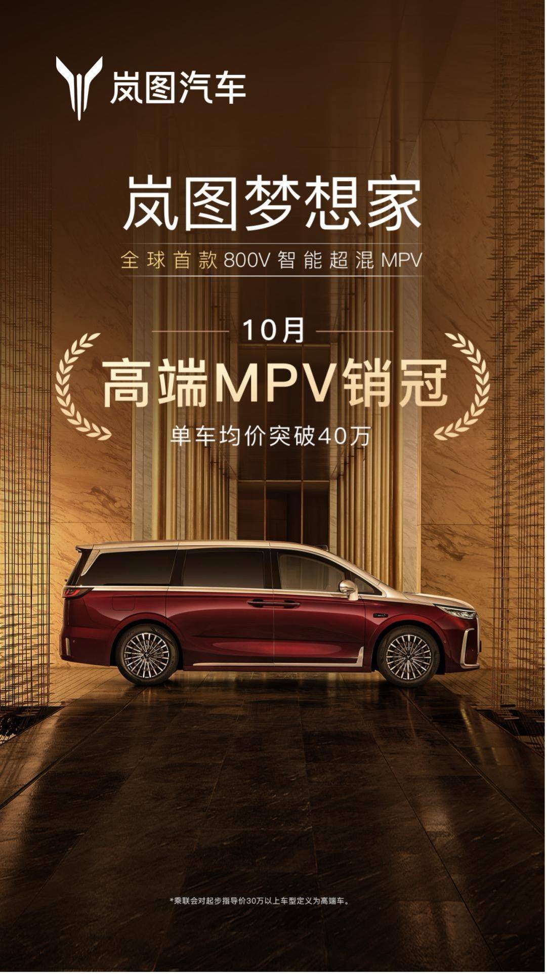 岚图梦想家10月再夺销冠,稳坐高端MPV头把交椅