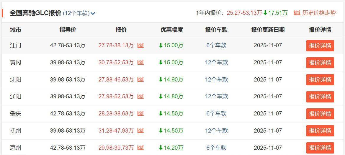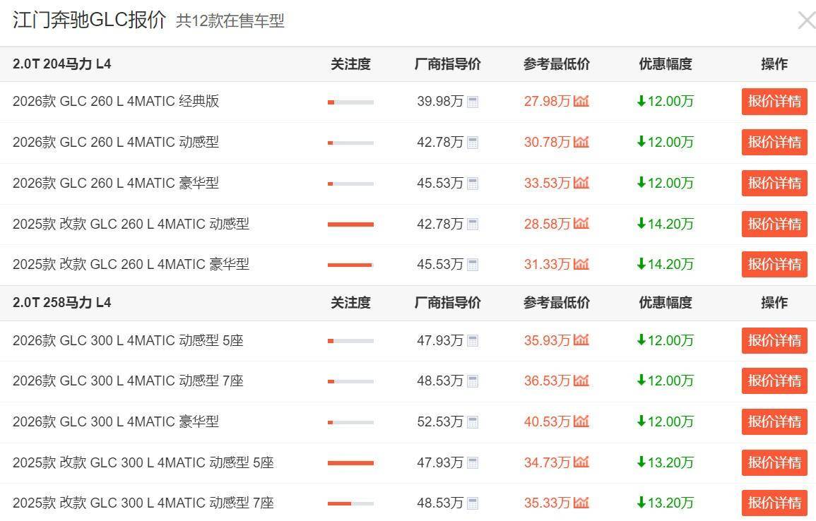 大家应该知道,面对销售压力,奔驰不得不采取大幅降价策略。指导价39.98-53.13万元的奔驰GLC,终端售价优惠最高达12万元,甚至有的优惠达15-16万元。