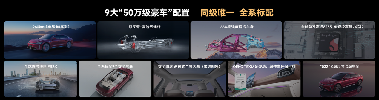 值得一提的是,风云A9L光辉(四驱)的不少细节来自用户共创。官方透露,在项目开发与迭代过程中共收集了超1.88万条用户建议,其中有1278条被采纳并落地,包括双冗余半隐藏式门把手、速控电动尾翼、云绘江山面板,以及支持城市记忆NOA和记忆泊车的OTA升级方案等。部分车主也在发布会上分享使用体验:有从传统豪华品牌换购而来的用户,将这款车视作“品味升级”的选择;也有金融行业用户从价值投资角度肯定其配置与价格的匹配度。