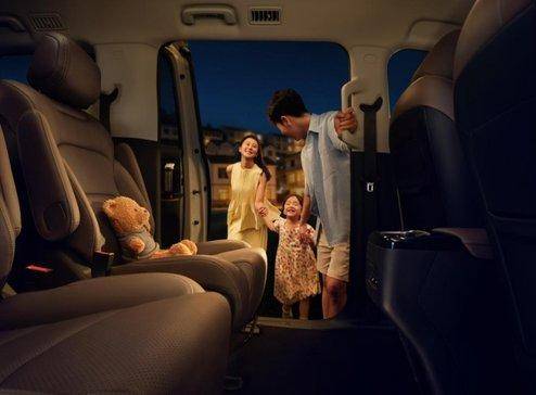 空间上,星光730长4910mm,轴距2910mm,空间堪比合资主流MPV,内部座舱空间最长达3331mm,横向肩部宽度最大达1500mm,第三排地面到顶棚高度超1.2米,三排都舒适。第三排座椅采用魔术翻折设计,放到倒后后备箱最大容积1202L,全家出行也够用。同时,星光730还是10万级MPV中唯一可配备电滑门的车型,上下更方便,避免“开门杀”;标配B柱辅助关爱拉手,老人、小孩上下车更轻松。