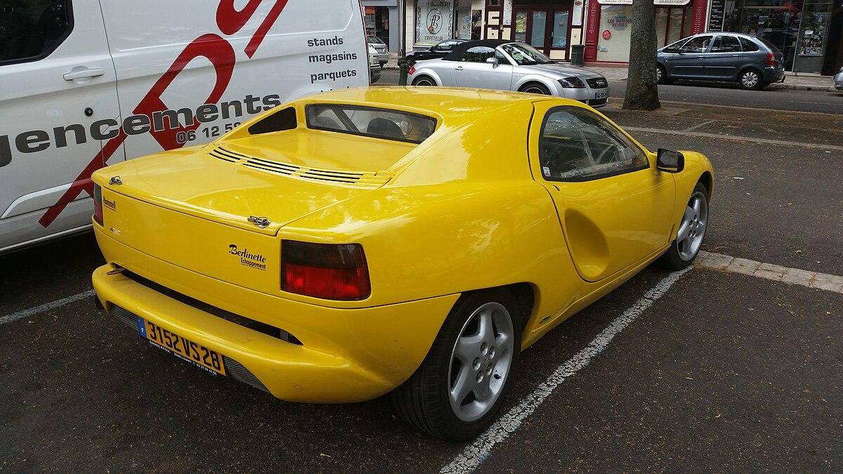1994年日内瓦车展,量产版Berlinette Échappement正式亮相。这款双座跑车采用管状钢制底盘,车身为玻璃纤维材质,整备质量仅为980千克。中置的是一台来自标致的2.0升16气门双顶置凸轮轴四缸发动机,最大功率116千瓦,配备六速手动变速箱——这在当时并不常见。前后独立悬挂系统赋予了这款车出色的操控性能,最高时速可达222千米每小时。车身长度仅约4.12米,是当时世界上最小的跑车之一。激进的外观设计出自埃里克·德波之手,车身侧面的楔形切线让人联想到甘迪尼的设计语言。