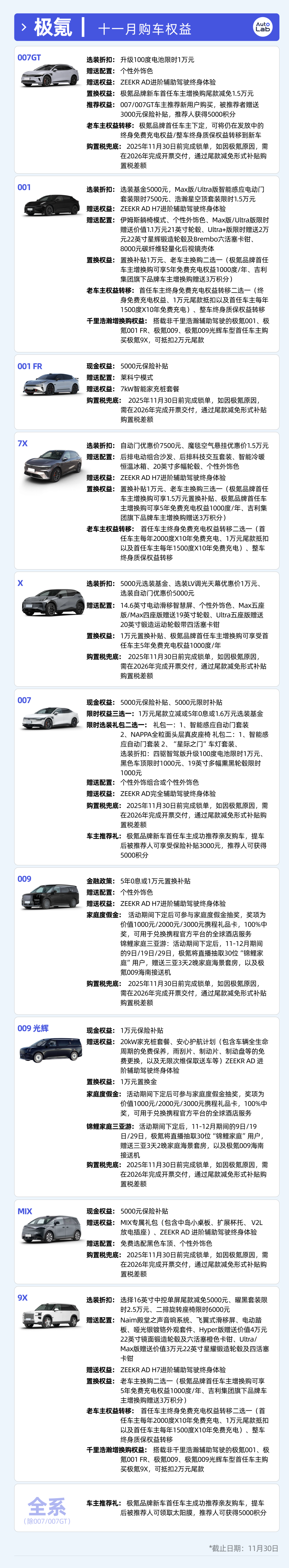 从我们统计的权益来看,本月各家车企也都没有因为进入11月而减小力度,部分品牌更借势开启了新一轮营销。