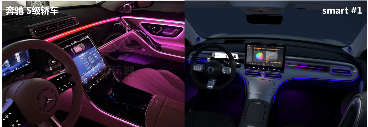 奔驰一直是氛围营造高手,smart #1发挥了优良传统,搭载与奔驰S级同源的256 色双区氛围灯,支持 “随音乐律动”、“温度调节联动”、“随驾驶模式切换” 等多种联动功能。