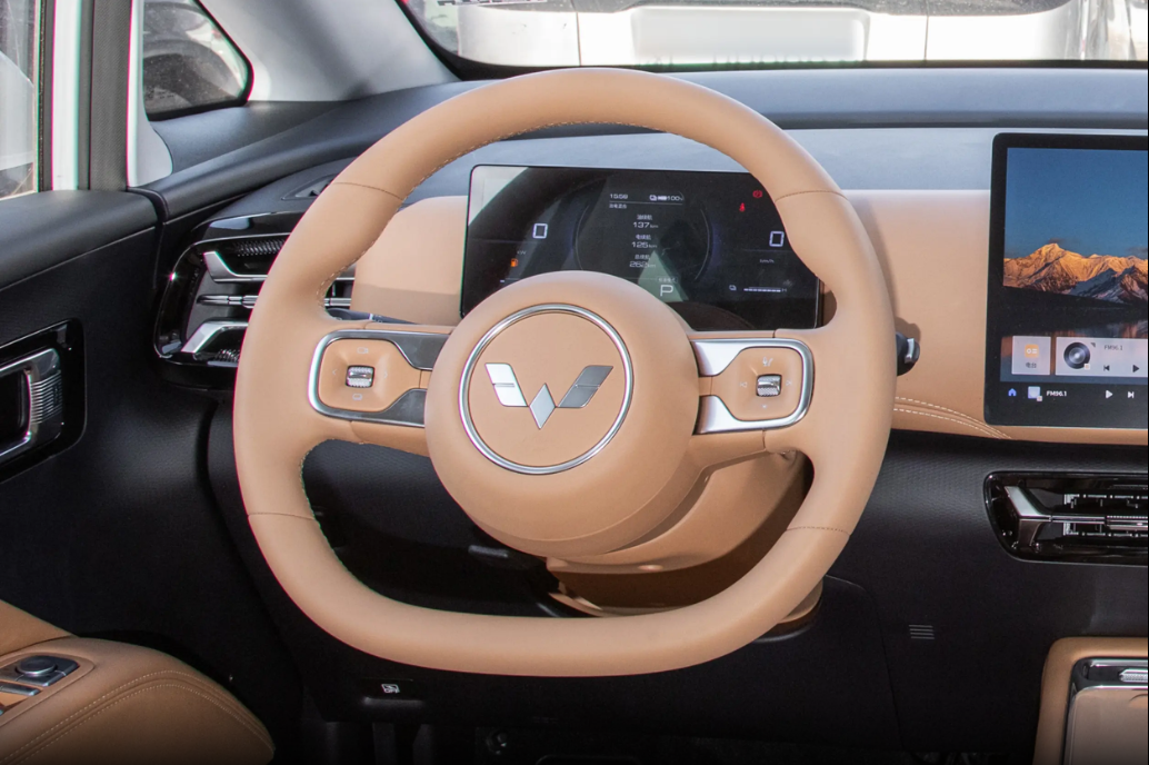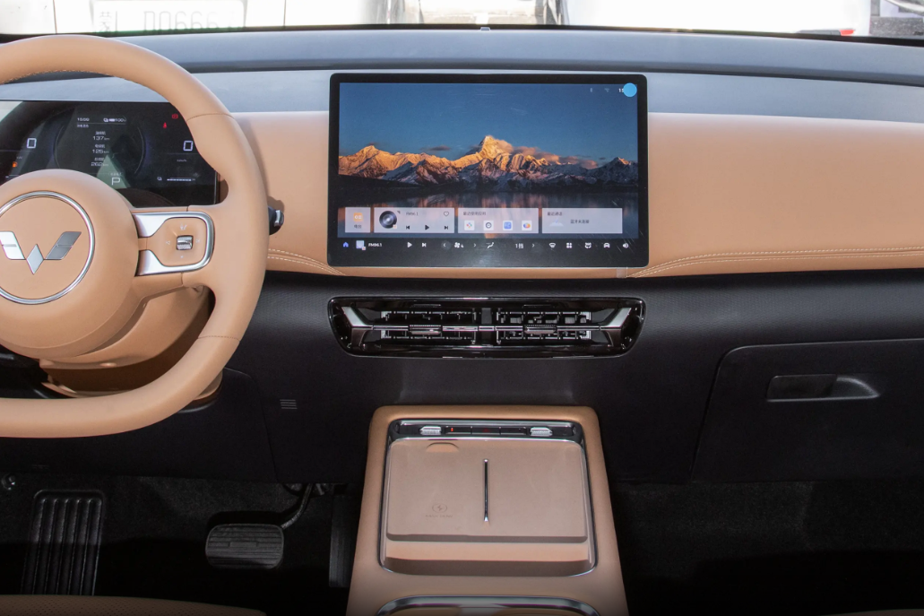 坐进车里,内饰的质感会让你觉得超出这个价位的预期。它提供了胡桃棕和暖沙棕两种配色,都是很温馨的色调,特别适合家庭用车的氛围。座舱采用环抱式设计,坐在驾驶位上,各种功能按键都触手可及,操作起来很方便。方向盘是超纤皮包覆的,握感很舒服,而且是平底设计,不仅看着运动,也给腿部留出了更多空间。中控台上最有吸引力的的就是12.8英寸的悬浮大屏,屏幕分辨率不错,操作起来也很流畅,支持手机互联,不管是导航还是放音乐都很方便。值得一提的是,它还支持Wi-Fi6传输,配对速度很快,大概5秒就能完成连接,比不少同级车型的车机反应都快。