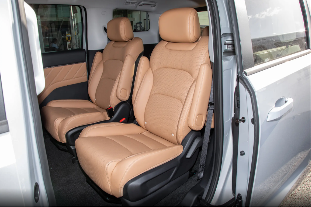 靠背还能调角度,把隐藏的腿托一拉出来,瞬间就有那 “老板座” 的感觉了!关键的是中间过道,足足有 230mm宽,老人抱着孩子上下车,不用侧着身子挤来挤去,小孩也能从第二排蹦蹦跳跳跑到第三排,特方便。说起第三排体验,以前我坐过不少7座车的第三排,那简直就是 “小板凳”,腿都伸不开。但五菱星光730PHEV这第三排,坐垫尺寸是1230mm*490mm,我坐进去膝盖离前排还有两拳距离,头部也有一拳半的空间,一点不觉得憋屈。我还拉着同行的两个朋友一起坐进去,三个人并排坐着,胳膊肘都不用互相挤,就算开长途也不会觉得累得慌。销售跟我说这车空间利用率高达 88%,当时我就觉得,这数据真没掺水!
