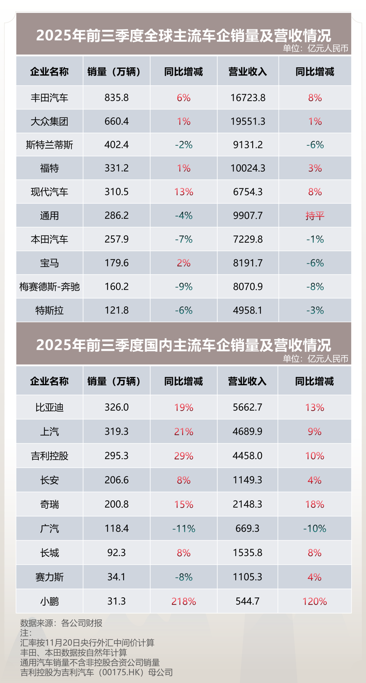2025年临近收官,全球汽车业正面临形势严峻的阶段性调整期。三季报数据显示,全球头部车企均出现增长乏力现象。