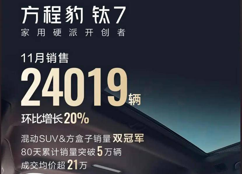 方程豹钛7:11月又卖了24019辆!夺混动/方盒子销量双冠军