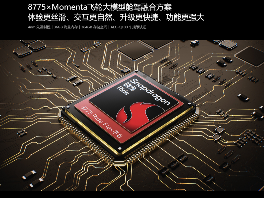性能方面,新车采用的是高通最新的8775芯片,拥有72TOPS的AI算力。