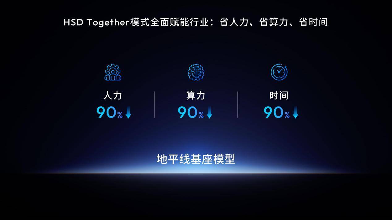 大会当天,地平线宣布,将其已验证的全栈能力,以全新的“算法服务”模式——HSD Together,向整个行业开放。在此模式中,地平线与合作伙伴在明确分工下深度共创。合作伙伴可以聚焦于自身优势:系统集成测试、车型适配开发、功能定制开发、硬件与底软交付;地平线则提供覆盖产品开发全周期的“算法服务”,包括:数据服务与艾迪SaaS平台、专业的算法适配工程与咨询服务、以及最核心的基座模型授权。余凯介绍:“HSD Together算法服务模式的根本目的,是让合作伙伴能够基于地平线已验证的成熟智能基座,将产品开发中的人力投入、算力消耗与上市周期,均大幅降低90%。我们要让每一家企业,都能更轻盈、更快速地将顶尖智驾能力,转化为自身品牌的独特竞争力。”