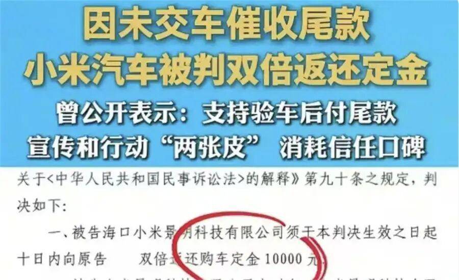 2025年,小米汽车第一次在法院里输了官司,而且是很典型的“定金纠纷”: