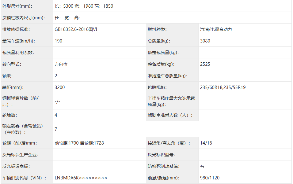 尺寸方面,新车的长宽高分别为5300mm×1980mm×1850mm,轴距3200mm,采用了2+2+3的七座布局。作为参考,市场中比较热销的岚图梦想家车长5315mm;别克GL8 PHEV车长5219mm。