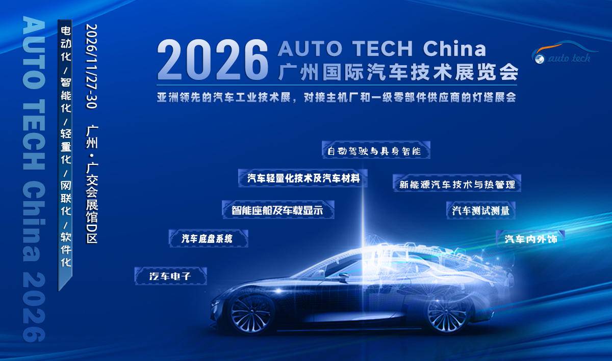 AUTO TECH China 2026——诚邀您与行业同仁一道共迎汽车人的行业盛会,奏响汽车产业新篇章。11月27日-30日,广州·广交会展馆D区,期待您的莅临!广告席位和展位已正式起售,优质展位预订从速。可联系组委会索取参展合同及展位平面图!更多精彩等待您现场解锁!