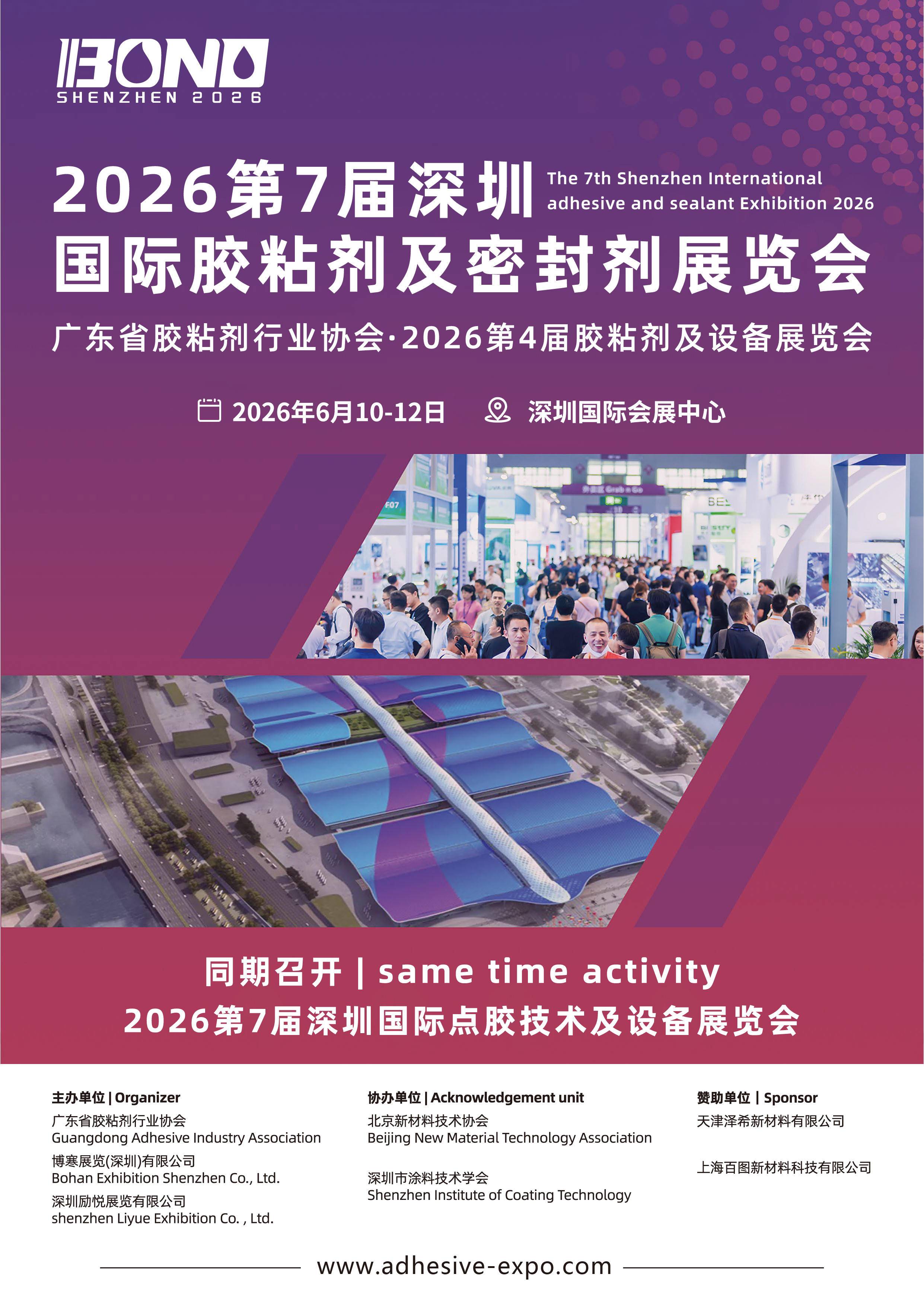 BOND2026第七届大湾区胶粘剂及密封剂展览会将于2026年6月10-12日在深圳国际会展中心举办,聚焦胶粘剂、密封剂全产业链,吸引500多家国内外企业参展。