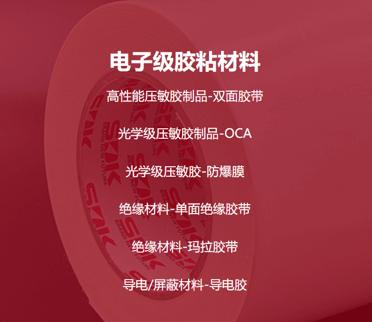功能性薄膜材料、电子级胶粘材料、热管理复合材料和薄膜包装材料四大类,主要应用于消费电子、新型显示、新能源汽车、家用电器、陶瓷电容等重点领域,战略布局面向全球,销售网络国际化。公司凭借强大的研发、生产及快速市场响应能力,为客户提供高质量、高性能的精密涂层材料产品和技术解决方案,与富士康、Facebook、领益、伯恩等