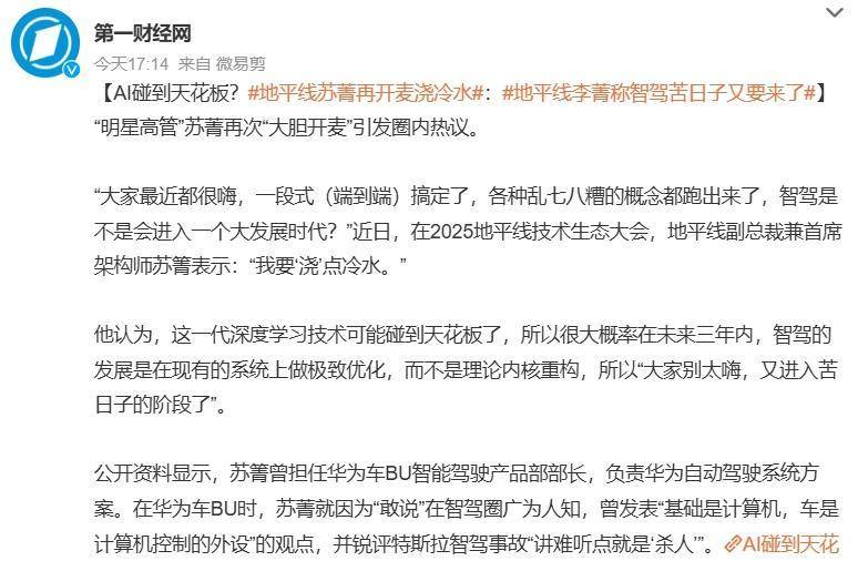 但成为“最大公约数”并不意味着天然拥有稳定位置。在2025年地平线技术生态大会上,地平线副总裁兼首席架构师苏箐则为行业热度“泼了一盆冷水”。