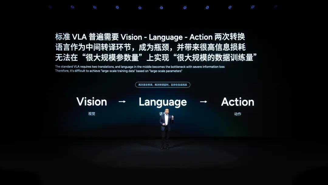 新的模型架构更扁,不再把视觉token先翻译成文字描述,再由语言模型生成驾驶指令,而是让网络自己学习“视频流、时空规律、连续动作”的隐式映射,降低延迟和信息损耗。